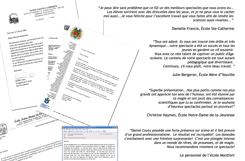 Les spectacles "Science ou Magie? " sont de véritables événements où l'énergie, l'enthousiasme et l'humour servent la soif de découvertes des enfants de 5 à 12 ans. Une série de démonstrations appartenant aux domaines de la science et de la magie leur sont présentées, les invitant du même coup à choisir et à exercer leur jugement critique.